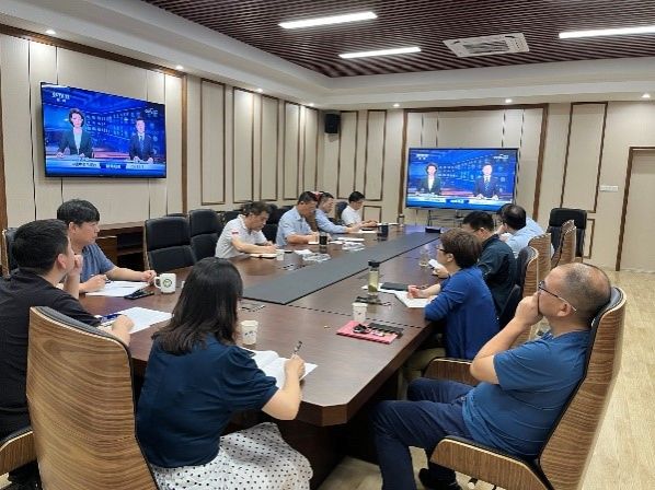 学习会通过观看相关报道的方式开展,经理冯果、纪委书记项焱、副经理祝捷作交流发言。